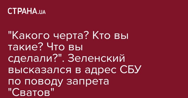 "Какого черта? Кто вы такие? Что вы сделали?". Зеленский высказался в адрес СБУ по поводу запрета "Сватов"