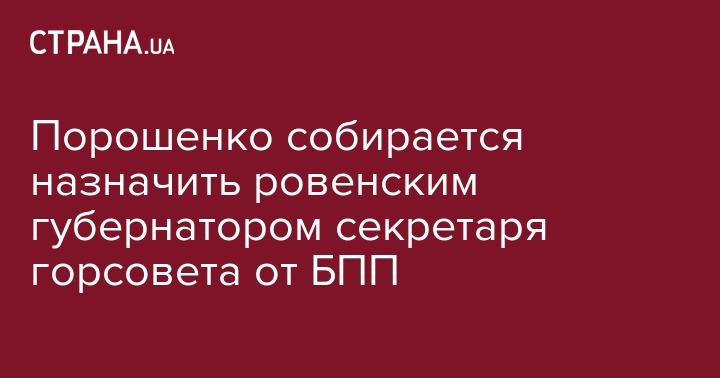 Президент Петр Порошенко намеревается назначить на должность председателя Ривненской облгосадминистрации секретаря местного городского совета Алексея Муляренко ("Блок Петра Порошенко "Солидарность"). Об этом "Украинским Новостям" сообщил информированный источник в Ривненском горсовете.
