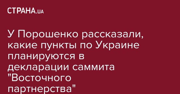 У Порошенко рассказали, какие пункты по Украине планируются в декларации саммита "Восточного партнерства"