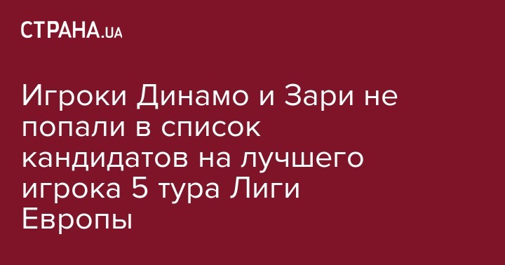 Игроки Динамо и Зари не попали в список кандидатов на лучшего игрока 5 тура Лиги Европы