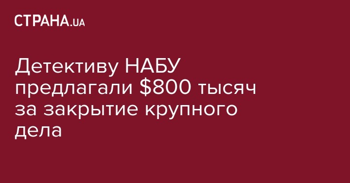 Детективу НАБУ предлагали $800 тысяч за закрытие крупного дела