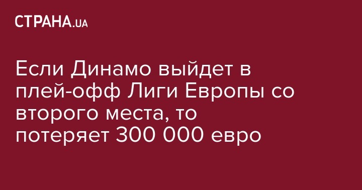 Если Динамо выйдет в плей-офф Лиги Европы со второго места, то потеряет 300 000 евро