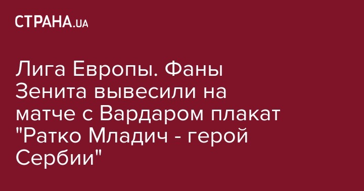 Лига Европы. Фаны Зенита вывесили на матче с Вардаром плакат "Ратко Младич - герой Сербии"