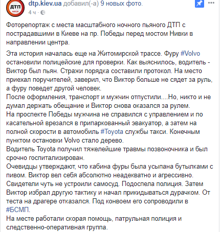 В Киеве ночью произошло масштабное пьяное ДТП на проспекте Победы перед мостом на Нивках. Об этом в Facebook сообщает dtp.kiev.ua.