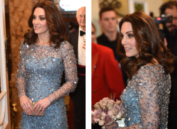 Беременная третьим ребенком герцогиня Кембриджская Кейт Миддлтон появилась на публике в блестящем платье расшитом "ледяными" стразами и пайетками из осенней коллекции британского дизайнера Дженни Пэкхем. Об этом сообщает Elle.ru.