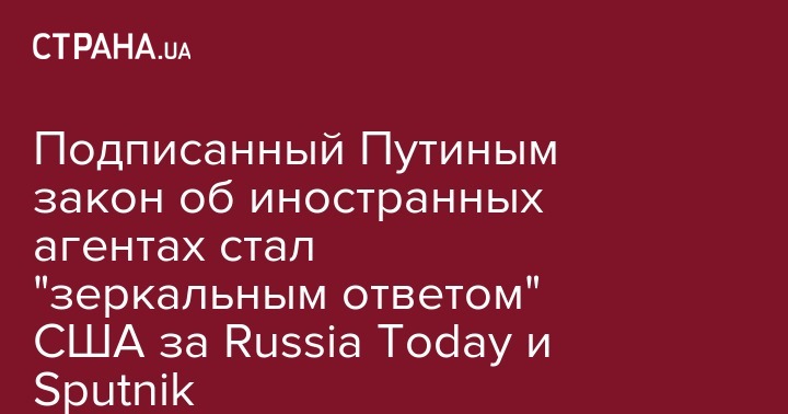 Подписанный Путиным закон об иностранных агентах стал "зеркальным ответом" США за Russia Today и Sputnik
