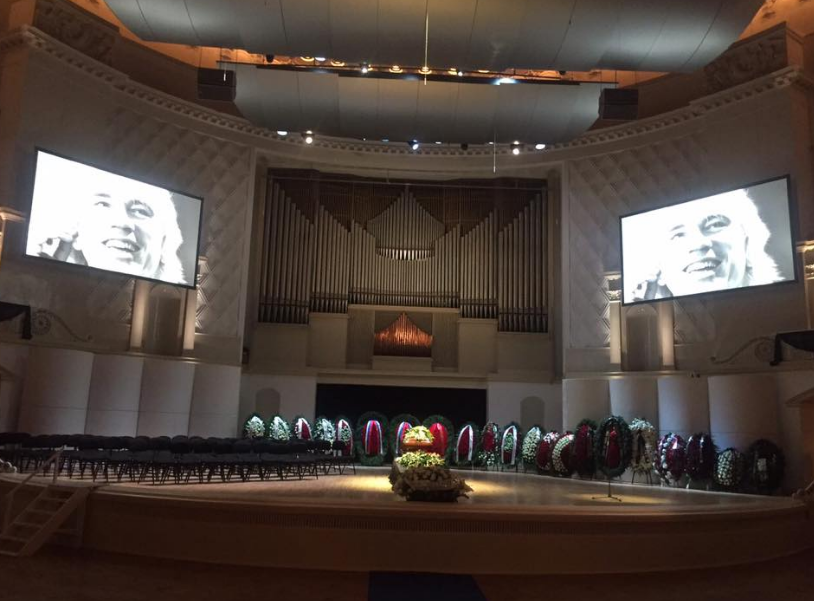 На здании филармонии висит баннер с портретом певца, из колонок звучат песни в его исполнении. После прощания последует процедура кремации.
