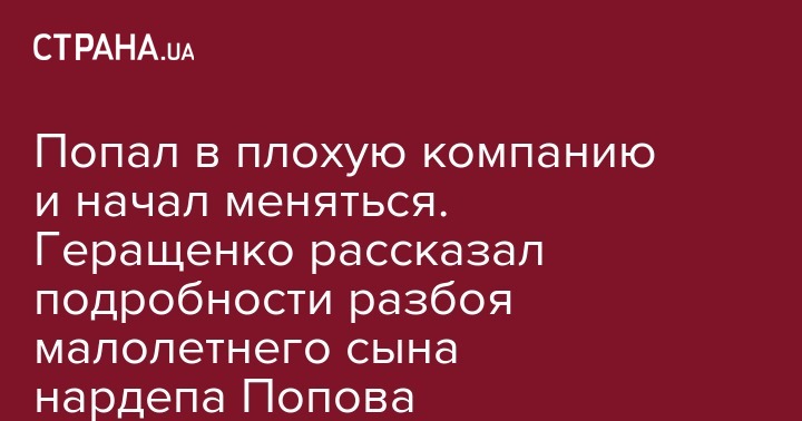 Попал в плохую компанию и начал меняться. Геращенко рассказал подробности разбоя малолетнего сына нардепа Попова