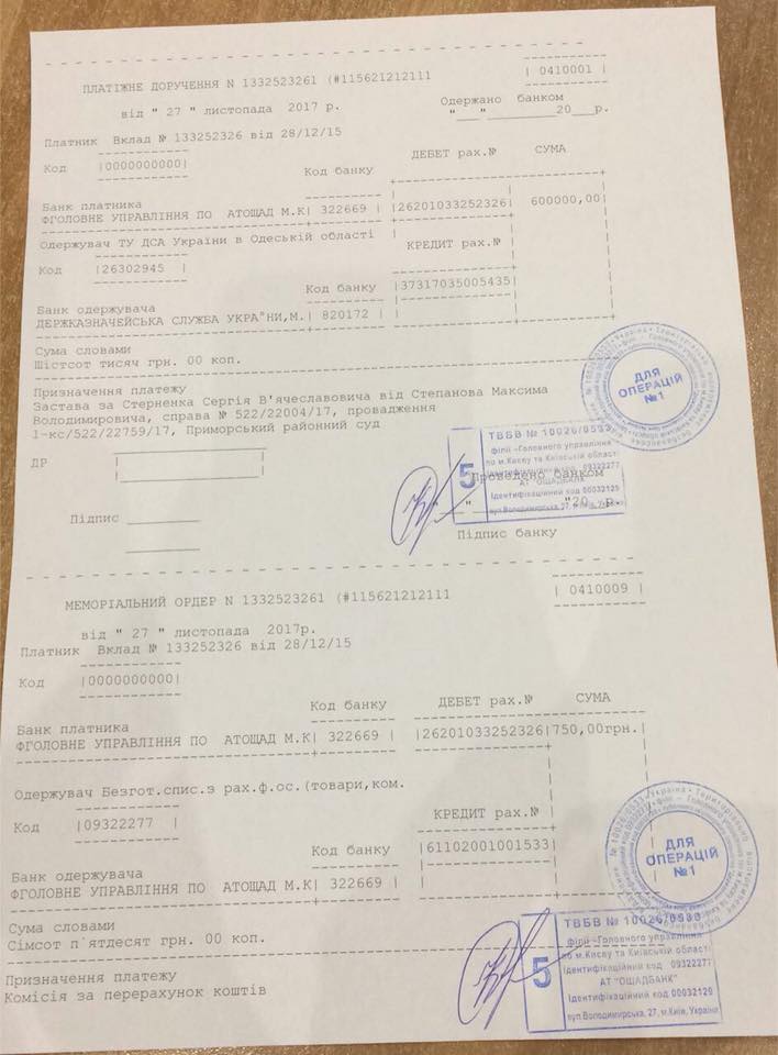 При этом губернатор одесской области Максим Степанов изъявил желание внести залог за арестованного Сергея Стерненко.