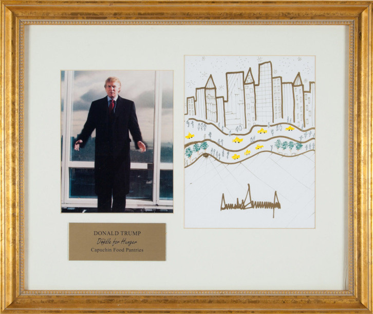 Рисунок Дональда Трампа, изображающий линию небоскребов Манхэттена, предварительно оценен в $75 тыс., ставки на него пока не делались.