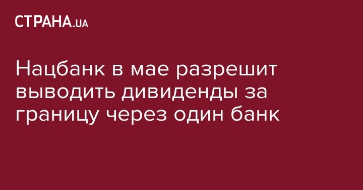 Нацбанк в мае разрешит выводить дивиденды за границу через один банк