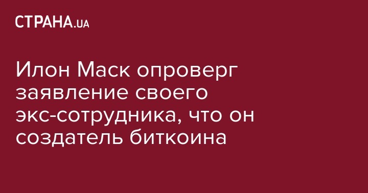 Основатель компаний SpaceX и Tesla Илон Маск опроверг заявление своего бывшего сотрудника, якобы он является основателем биткоина. Об этом он написал в своем Twitter, отвечая на соответствующий вопрос подписчика.