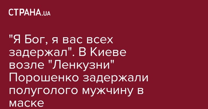 "Я Бог, я вас всех задержал". В Киеве возле "Ленкузни" Порошенко задержали полуголого мужчину в маске
