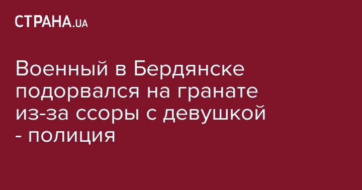 22-летний военный, который минувшей ночью  погиб от взрыва в Бердянске, совершил суицид из-за ссоры с девушкой. Об этом УНН стало известно из собственных источников в полиции.