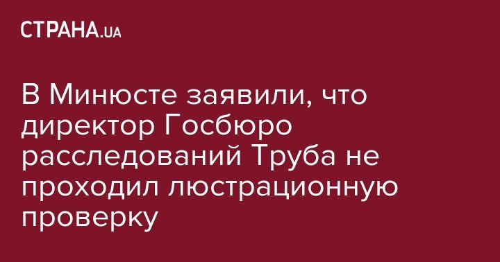 Министерство юстиции заявляет, что директор Государственного бюро расследований Роман Труба не проходил люстрационную проверку.