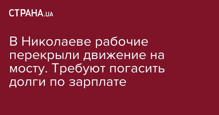 "Сегодня, примерно в 09:30 около 150 рабочих завода перекрыли автомобильное движение по ул. Большая Морская, в центральном районе Николаева. Требование протестующих - выплата долгов по заработной плате", - говорится в сообщении.