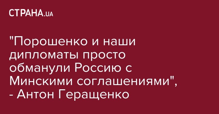 Народный депутат от "Народного фронта" Антон Геращенко, комментируя высказывания главы МВД Арсена Авакова о "смерти" минских соглашений, заявил, что, когда президент и украинские дипломаты подписывали их, то сознательно обманули Россию.