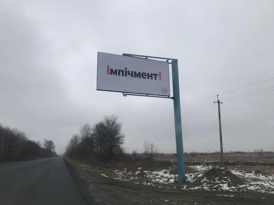 Сегодня, 29 ноября, украинский политтехнолог Сергей Гайдай опубликовал новую рекламу, которая появилась на дорогах Украины в виде билбордов, на которых написано всего одно слово "Імпичмент!". Фото с билбордом опубликовано на странице политолога в Facebook.