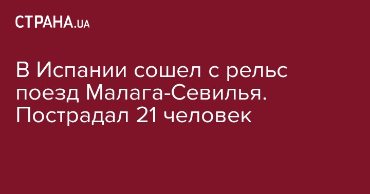 В Испании сошел с рельсов пассажирский поезд Малага-Севилья. Пострадал 21 человек, сообщает El Espanol.