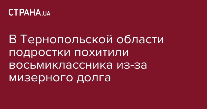 Четверо школьников в возрасте от 12 до 16 лет и 19-летний юноша в Тернопольськой области похитили восьмиклассника из-за долга в 15 гривен.