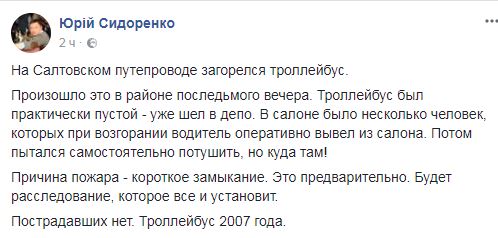 "Произошло это в районе 18:30. Троллейбус был практически пуст, уже шел в депо", - рассказал Сидоренко.