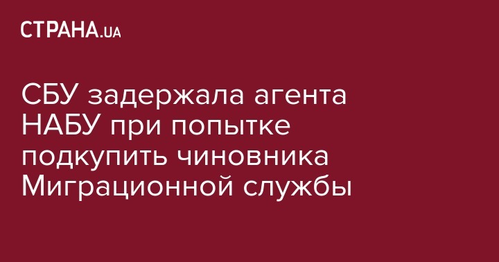 СБУ задержала агента НАБУ при попытке подкупить чиновника Миграционной службы