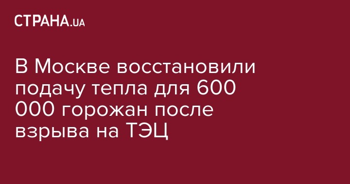 В Москве ликвидировали последствия взрыва трубы на ТЭЦ-23, из-за которого около 600 тыс. человек остались без тепла. Об этом сообщает РИА Новости.