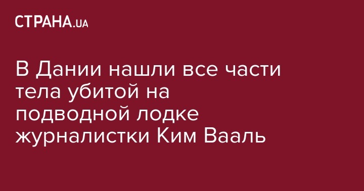 Полиция Дании сообщила, что после четырех месяцев поиска все части тела журналистки Ким Валль, убитой на борту подводной лодки Nautilus, найдены.  Об этом информирует The Local.