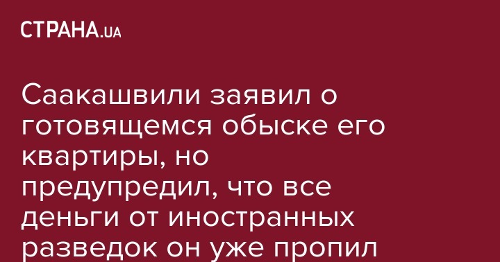 Лидер "Руха новых сил" Михаил Саакашвили заявил, что СБУ получило постановление суда на обыск его квартиры по делу о госперевороте в Украине. Об этом он написал в Facebook.
