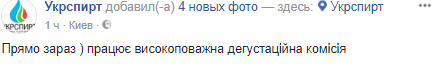Государственная компания "Укрспирт" обнародовала фото работы дегустационной комиссии. Запись появилась на странице компании в Facebook в четверг, 30 ноября.