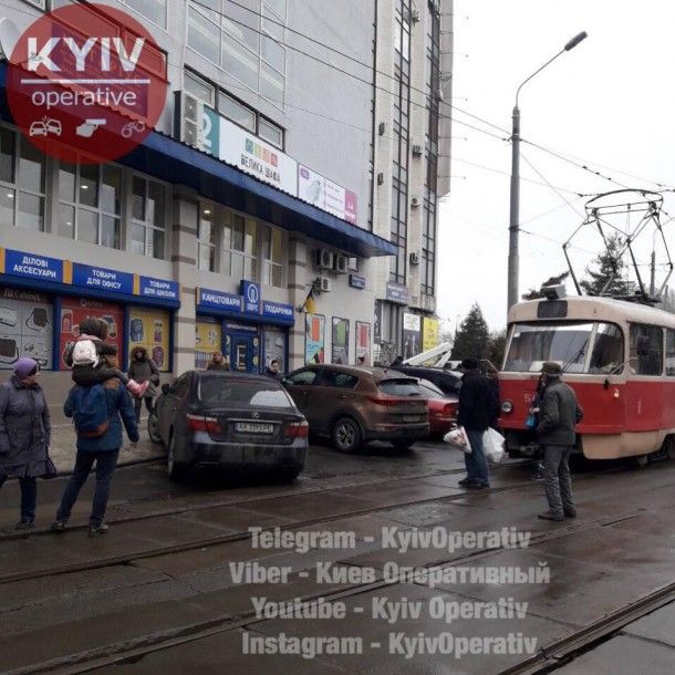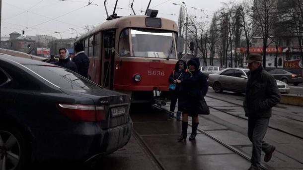 В Киеве "герой парковки" на Лексусе заблокировал движение трамваев