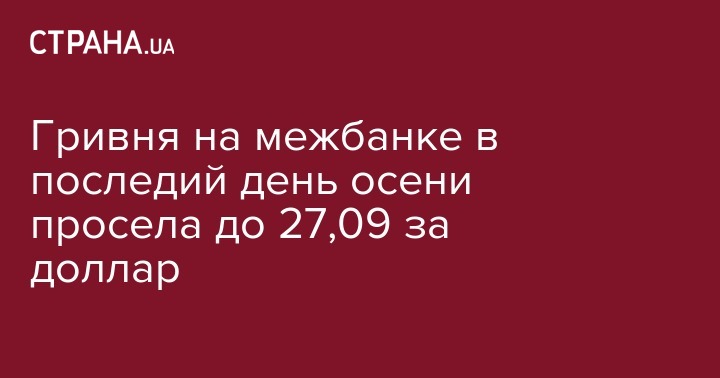 Гривня на межбанке в последий день осени просела до 27,09 за доллар
