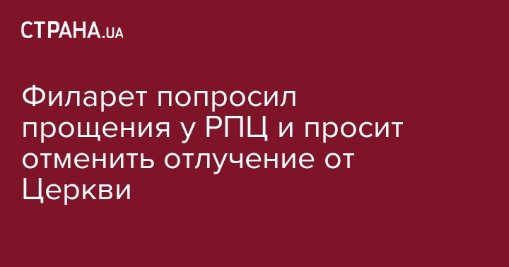Патриарх УПЦ КП Филарет попросил прощения у Русской православной церкви и попросил снять с него анафему в письме, адресованном Архиерейскому Собору РПЦ.