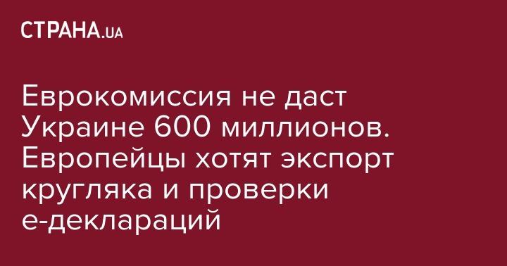 На прошлой неделе в ЕК озвучили четыре требования, без скорого выполнения которых Украина потеряет возможность получить транш: снятие запрета на экспорт леса-кругляка, запуск автоматической проверки электронной декларации, закон о кредитном реестр НБУ и проверка информации о бенефициарных владельцев компаний.