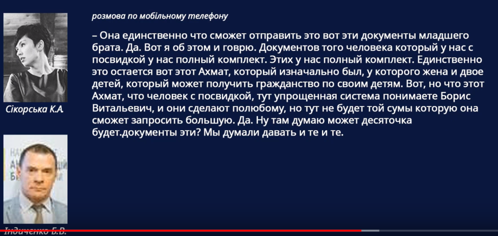 В ролике есть прослушка разговора некой Сикорской К.А. с Сергеем Титенковым, которого ведомство Луценко называет агентом НАБУ и который был задержан во время передачи денег Дине Пимаховой.