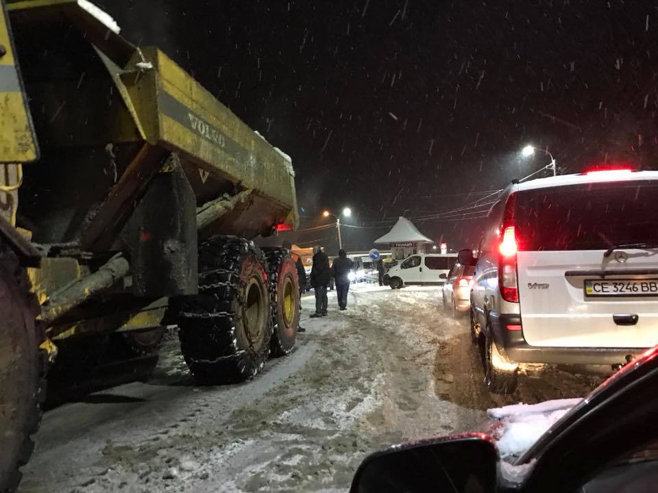 На Закарпатье сотни автомобилей стоят в многочасовой пробке из-за снегопада