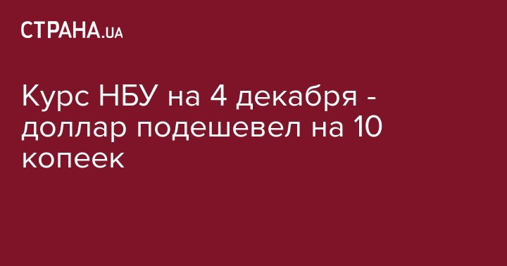 Курс НБУ на 4 декабря - доллар подешевел на 10 копеек