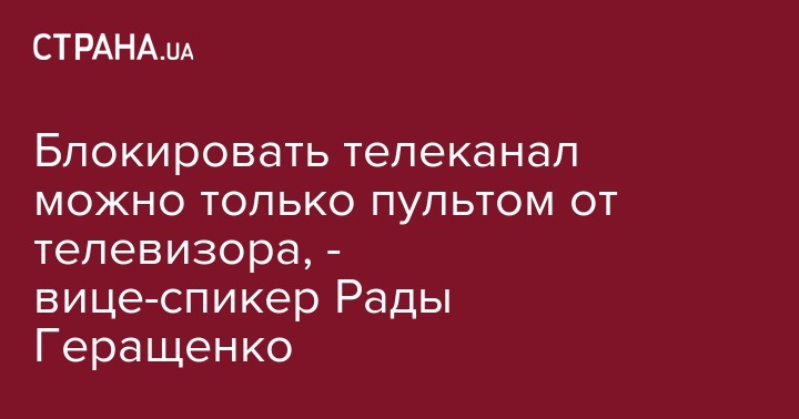 После блокады телеканала NewsOne в Киеве, вице-спикер Верховной Рады Ирина Геращенко заявила, что блокировать телеканал можно только пультом от телевизора. Об этом она написала на своей странице в Facebook.