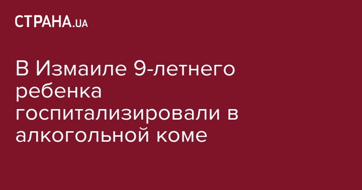 В Одесской области 9-летний ребенок впал в алкогольную кому, он госпитализирован в реанимацию. Об этом УНИАН сообщили в Измаильском городском отделе Одесского Главного управления ГосЧС.