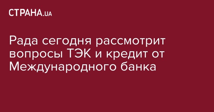 Рада сегодня рассмотрит вопросы ТЭК и кредит от Международного банка