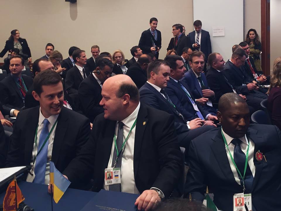 Украину на вступительной сессии форума вместо Луценко официально представляет посол Украины в США Валерий Чалый. Директор Национального антикоррупционного бюро Артем Сытник и руководитель Специализированной антикоррупционной прокуратуры Назар Холодницкий также присутствуют в зале, но вне сцены.