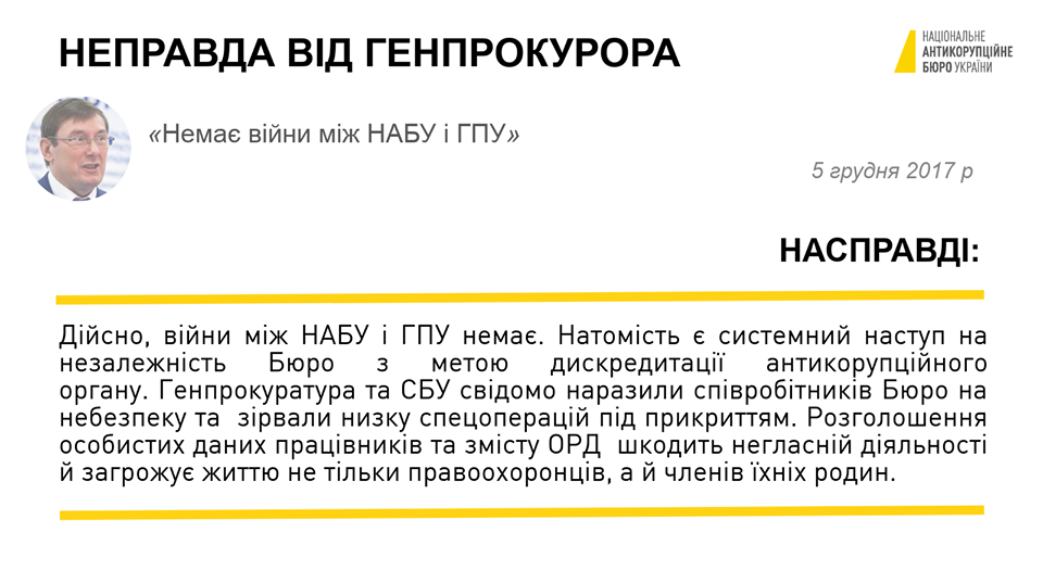 В пресс-службе антикоррупционного ведомства предоставили опровержения заявлений Луценко, с целью "предотвратить дальнейшие манипуляции".