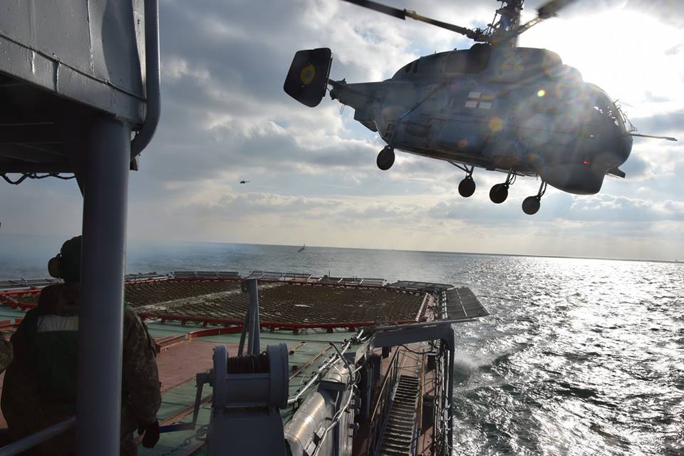 За действиями в море с борта фрегата "Гетман Сагайдачный", а также с борта одного из летательных аппаратов, который в том числе осуществлял посадку на фрегат, наблюдал командующий ВМС ВС Украины вице-адмирал Игорь Воронченко.