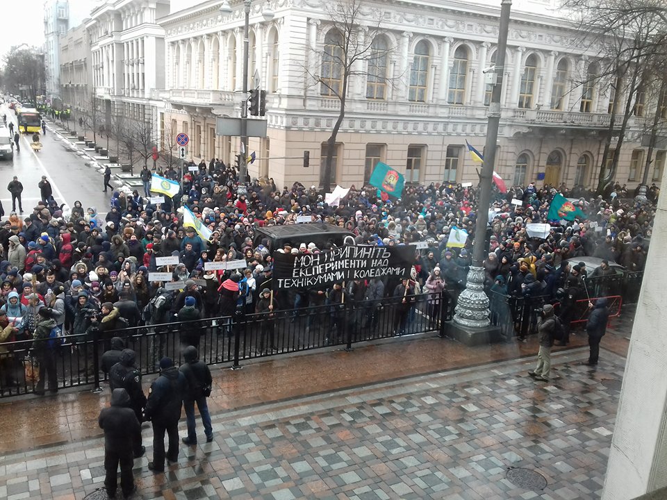 Сегодня под зданием Верховной Рады проходит митинг педагогов, которые требуют не принимать закон о передаче техникумов и колледжей местному бюджету. Об этом сообщает корреспондент "Страны".