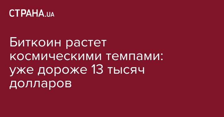 Биткоин растет космическими темпами: уже дороже 13 тысяч долларов