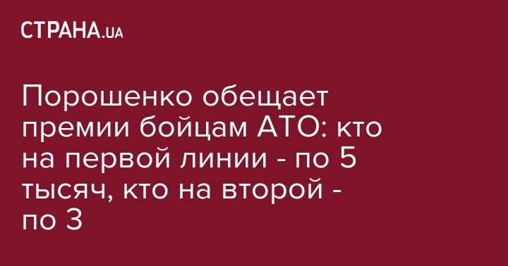 Порошенко обещает премии бойцам АТО: кто на первой линии - по 5 тысяч, кто на второй - по 3