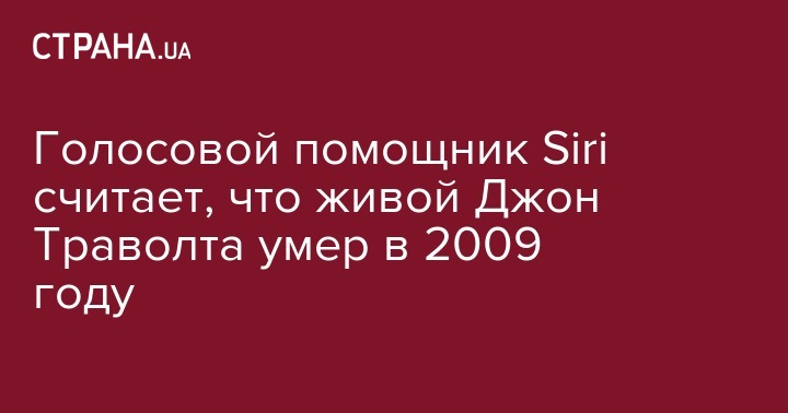 Голосовой помощник Siri в составе операционной системы iOS считает, что актер Джон Траволта скончался в 2009 году в возрасте 54 лет. Об этом сообщает Business Insider.
