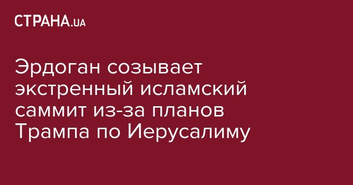 Президент Турции Реджеп Тайип Эрдоган призвал к созыву экстренного заседания лидеров стран Организации исламского сотрудничества (ОИС) для координации действий мусульманских государств в отношении возможного объявления Иерусалима столицей Израиля.