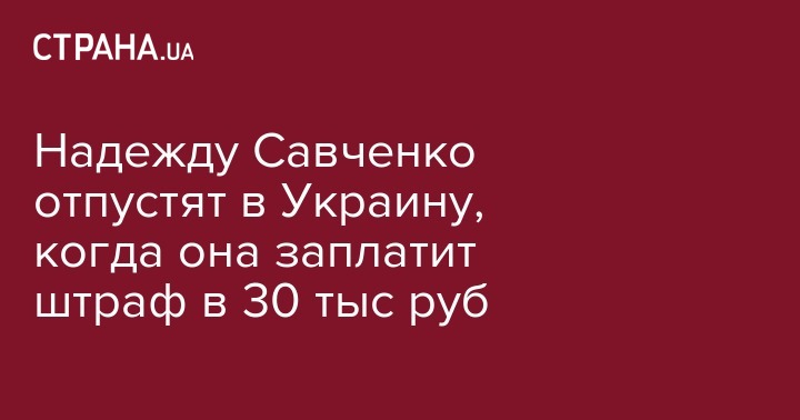 Украинскую летчицу Надежду Савченко, заключенную на территории России, освободят как минимум после выплаты 30 тысяч рублей штрафа. Об этом заявила сестра летчицы Вера Савченко в эфире телеканала 112 Украина.