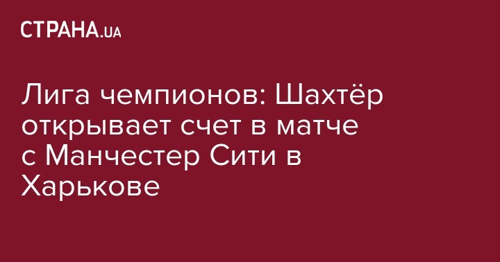 Донецкий "Шахтёр" открыл счет в решающем матче Лиги чемпионов с английским "Манчестер Сити", что проходит в Харькове.